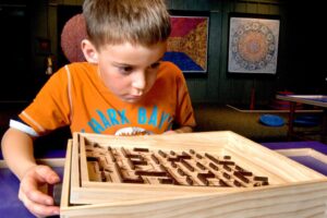 Grab a friend and work together to navigate the marbles through this winding labyrinth.